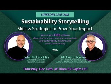 No fashion brand or designer wants to be accused of greenwashing. But how to avoid it? Prove your impact! With evidence-driven Sustainability Storytelling. At this event, MJ will reveal his formula for how fashion pros can produce content to prove they minimize the harm to people, planet and animals - to help unlock sales, investment, partnerships, donations, etc. Read more here.