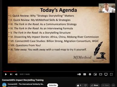 As an Ambassador for ConnectAID, our Founder led this training for NGO leaders on how to produce evidence-driven Impact Stories. Then, illustrated those skills and strategies through multiple Case Studies. MJ's formula is applicable to both for-profit and non-profit clients. Contact us if you'd like him to illuminate your true, on-the-ground impact.